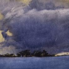 Image Credits: 'Approaching Storm' [top], 2013, oil on board, 13.5 x 1 cm; 'Winter Dawn', 9.xii.2013, oil on board, 50 x 152cm.