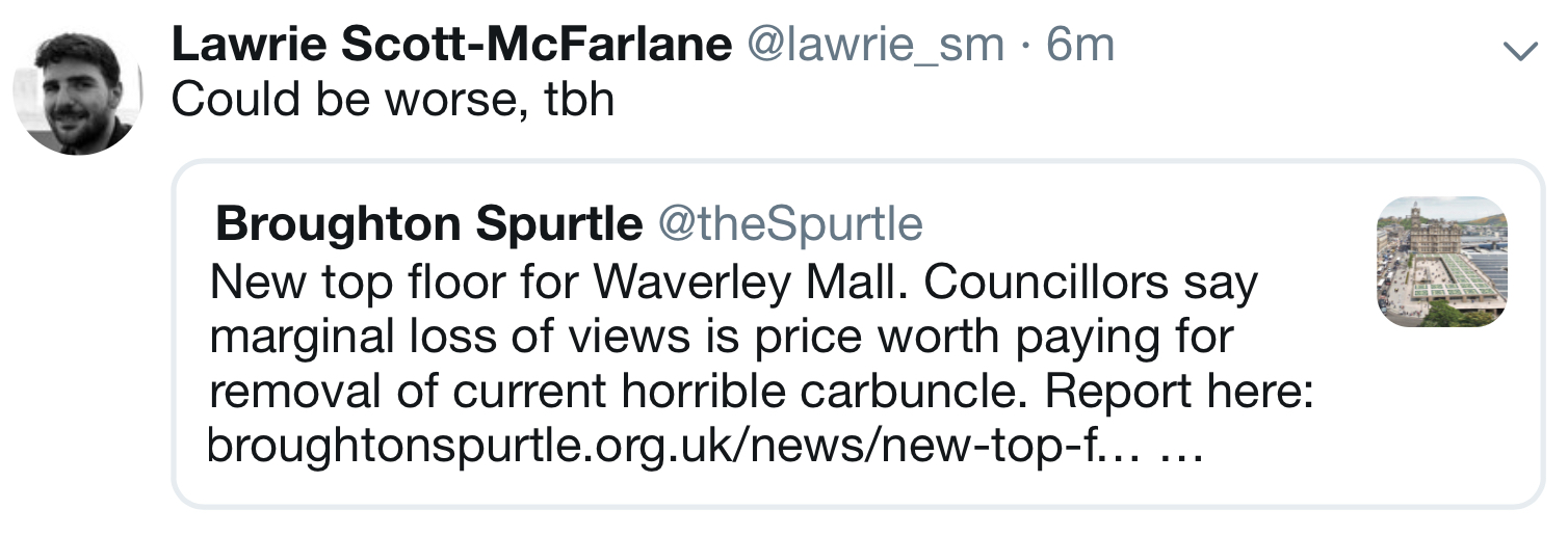 Cllr Booth (Grn) said that EWH and HES objections were in themselves sufficient to justify turning down the scheme. Cllr Staniforth (Grn) agreed. Cllr Gordon (SNP) spoke of minor erosions leading gradually to major ones. Cllr Gardiner (SNP) agreed with Cllr Booth, arguing that – despite some merits to the scheme – it compromised democratic and non-commercially-contingent public access to views of the Waverley Valley.