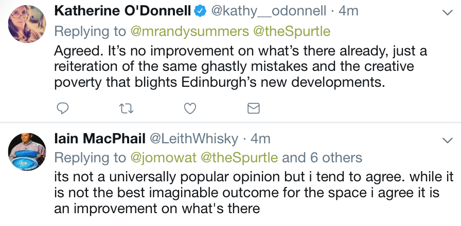 E-mail from Alan Welsh: Yet again a wasted opportunity. Integration of the existing buildings is what should happen.