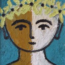 His oils here comprise an alternative take on the Scarborough seaside, with ‘Whiteline Girl with Flowers’ (above) and ‘Fishermen’ (below) standing out.