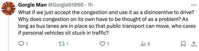 So it’s time to get a congestion charge back on the agenda ahead of Council elections in 2027. Can we change the question from How many cars can we move? to How many people can we move?