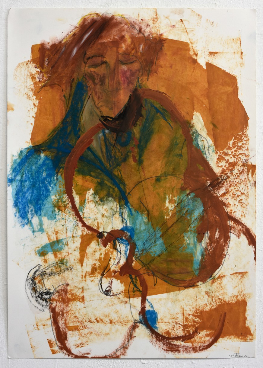 I enjoyed Shelagh Atkinson’s ‘Music with Viola’ for its slightly murky, suggestive abstraction. ‘My use of colour reflects an abundance of seeing, the experience, the felt force in these environments,’ she writes. Sure enough, the instrument’s woodiness and the music and the musician’s movement emerge through the vigorous fluidity with which she applies her paint.