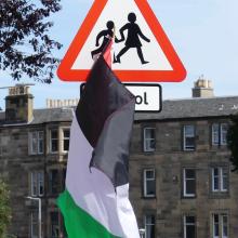 Organised by the Scottish Palestine Solidarity Campaign, the demonstrators stood for 4 hours outside the school gate to make their points concerning what they regard as Israel’s unjust policy towards Palestinians.