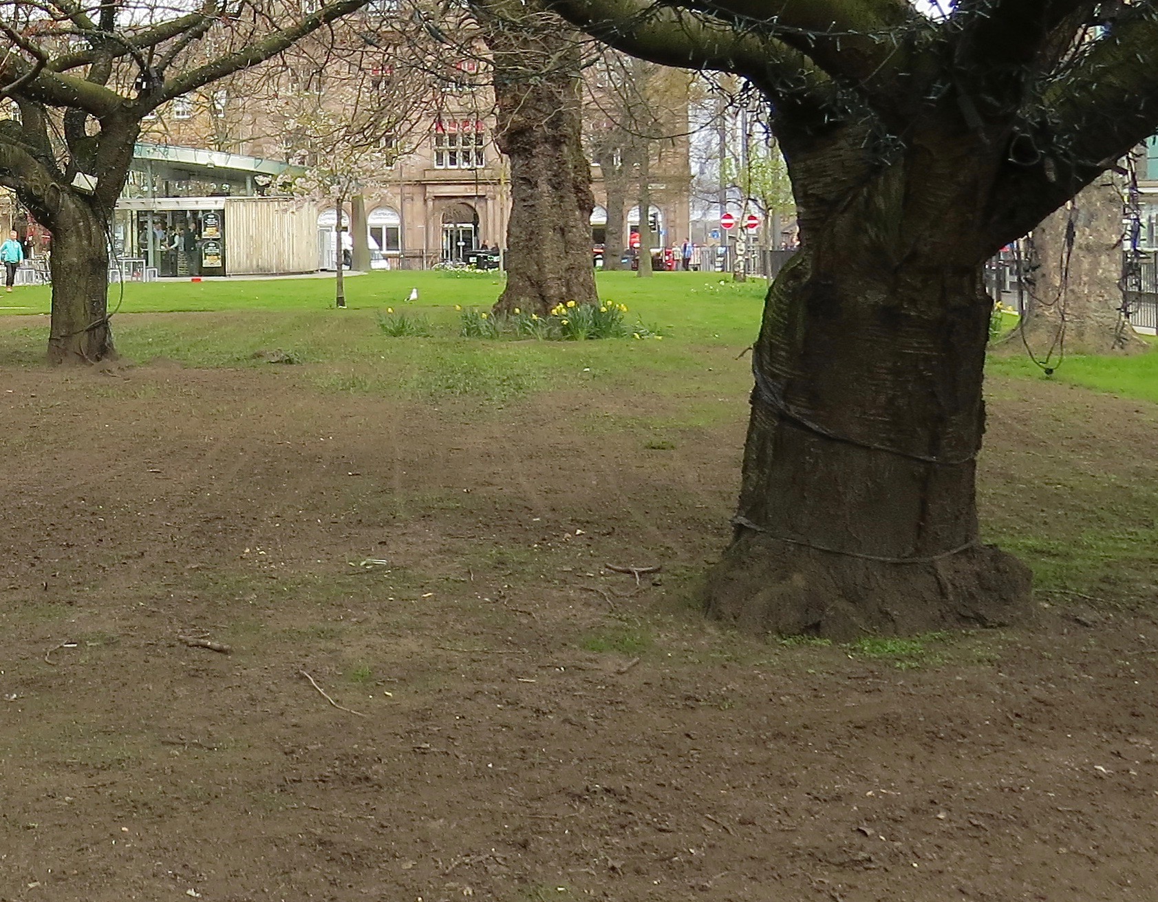 Grass was finally restored to the central circle of St Andrew Square Garden yesterday. We think this was 10 days after Underbelly’s planning-consent deadline for restoring the area to its pre-Christmas condition.