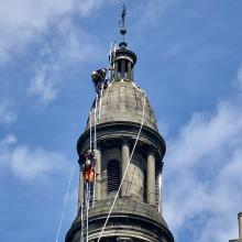 Unfortunately, once scaffolding was in place, contractors found that the condition of internal cornicework was worse than expected, and external stonework around the dome and weathervane was in danger of collapse.