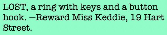 In 1886 Jane advertised in the Edinburgh Evening News Lost & Found column: