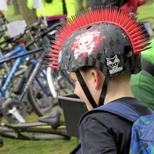 This visitor from Glasgow deliberated long and hard about what to do with his Pedal on Parliament flag. He didn't want to make his bike 'look overdecorated'.
