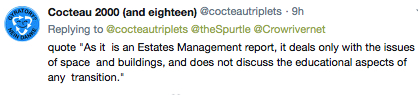 In fact, the idea of using Drummond for GME was first mooted by a Short Term Working Group in May 2016, but neither staff at Drummond nor the Parent Council were told about it at the time (see Appendix 1).
