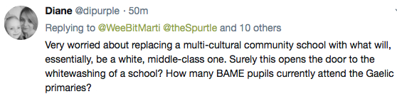 It seems that a significant proportion of parents whose children are educated in English rather than Gaelic see this potential development at Drummond not as an ‘opportunity’ but as a threat to the continued existence of the local school open to all students in the local community.