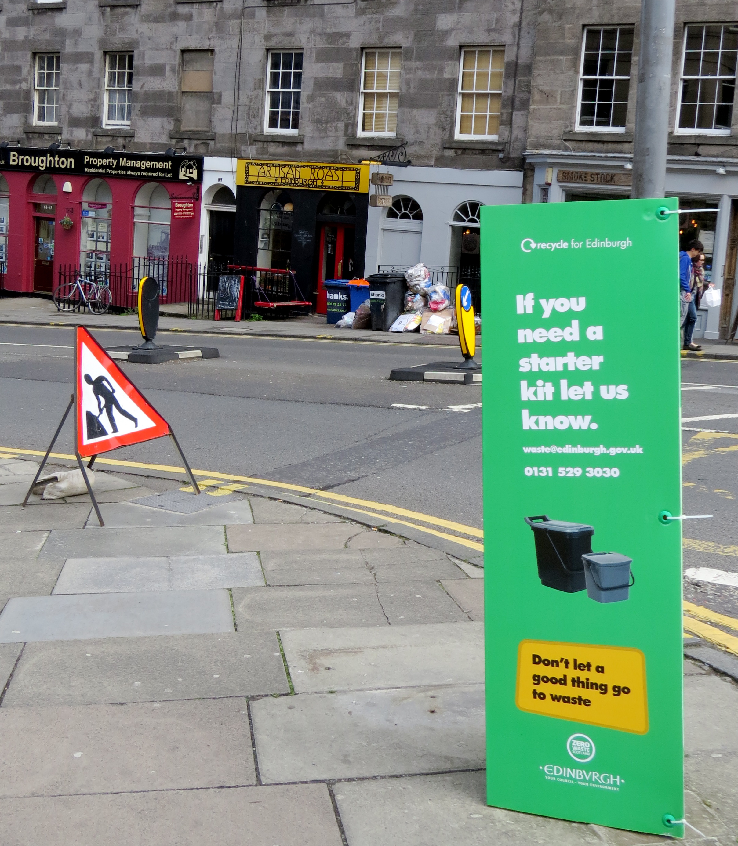 Those same people are, however, a little baffled by the Council’s recent determination to wrap lamp posts in cardboard advertisements for various of their own services and initiatives: trams, fostering, European elections, and recycling.