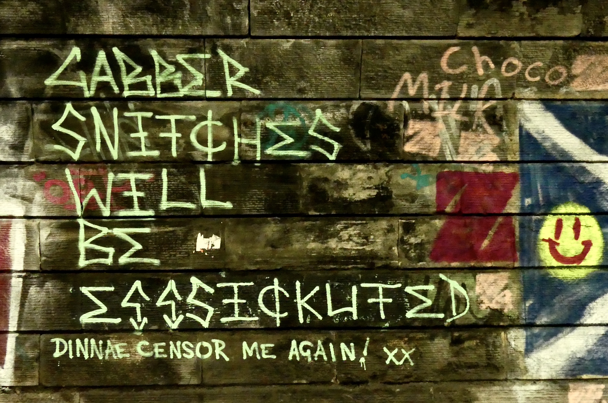 Gabber promises summary eggsecution of anyone defacing his or her work.