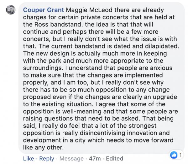 When these are held, a large portion of the area is boarded off from the public, not just on the footprint of the hard surface area around the Ross Bandstand but further out into the trees, soft ground and along the street.